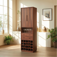 This handcrafted dining cabinet is built from solid wood, showcasing a warm natural grain and a clean modern silhouette. The lower wine grid provides organized storage for multiple bottles, while the open shelf keeps glasses within easy reach. Four smooth drawers and tall upper doors offer generous space for dining essentials, blending function with elegant craftsmanship.