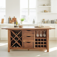 Handcrafted Solid Wood Dining Cabinet with Wine Storage, Drawers, and Hanging Glass Rack
