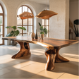 Handcrafted Solid Wood Dining Table with Sculptural Organic Base – Luxury Modern Design