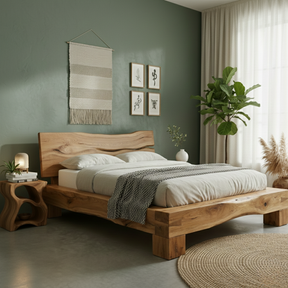 Bring natural warmth and character into your bedroom with our handcrafted solid wood live-edge bed frame. Each piece is built from premium hardwood, showcasing unique organic curves and rich natural grain patterns that make every bed one of a kind.