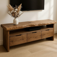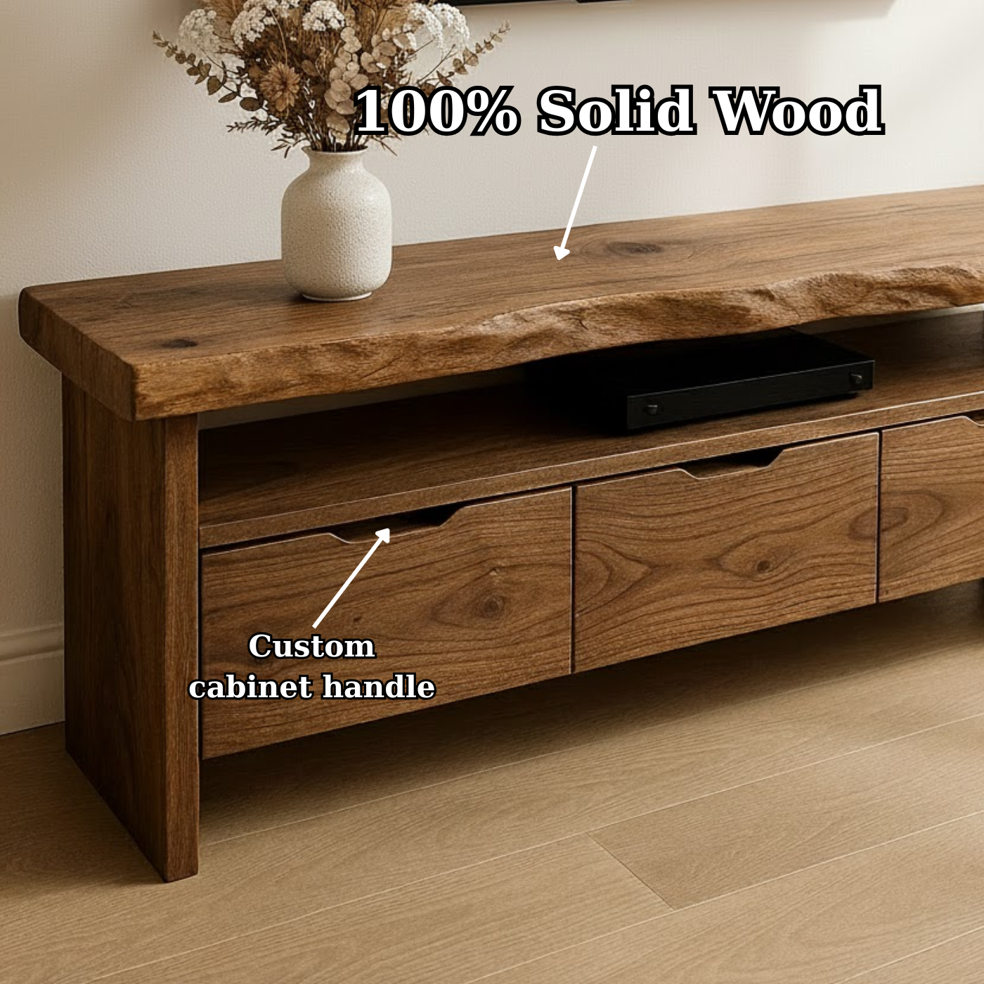 Handcrafted Solid Wood TV Stand with Live Edge Walnut Top and 3 Drawers
