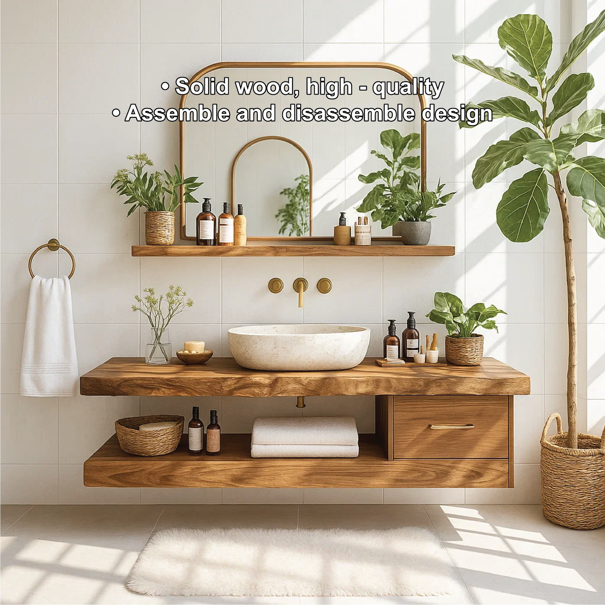 Crafted from solid natural wood, this floating vanity highlights the organic texture and warmth of a live edge top. Its open-shelf design offers both functionality and a minimalist aesthetic. Perfect for modern, rustic, or spa-inspired interiors — sink not included.