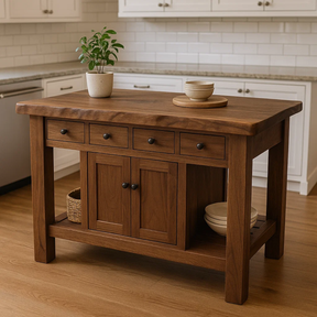 Handcrafted Solid Wood Kitchen Island - 4 Drawers & Cabinet Storage