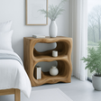 Handcrafted Solid Wood Nightstand – Sculptural Organic Bedside Table with Open Shelves