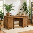 Handcrafted Solid Wood Office Desk – Rustic Work Table with Drawers and Natural Walnut Finish