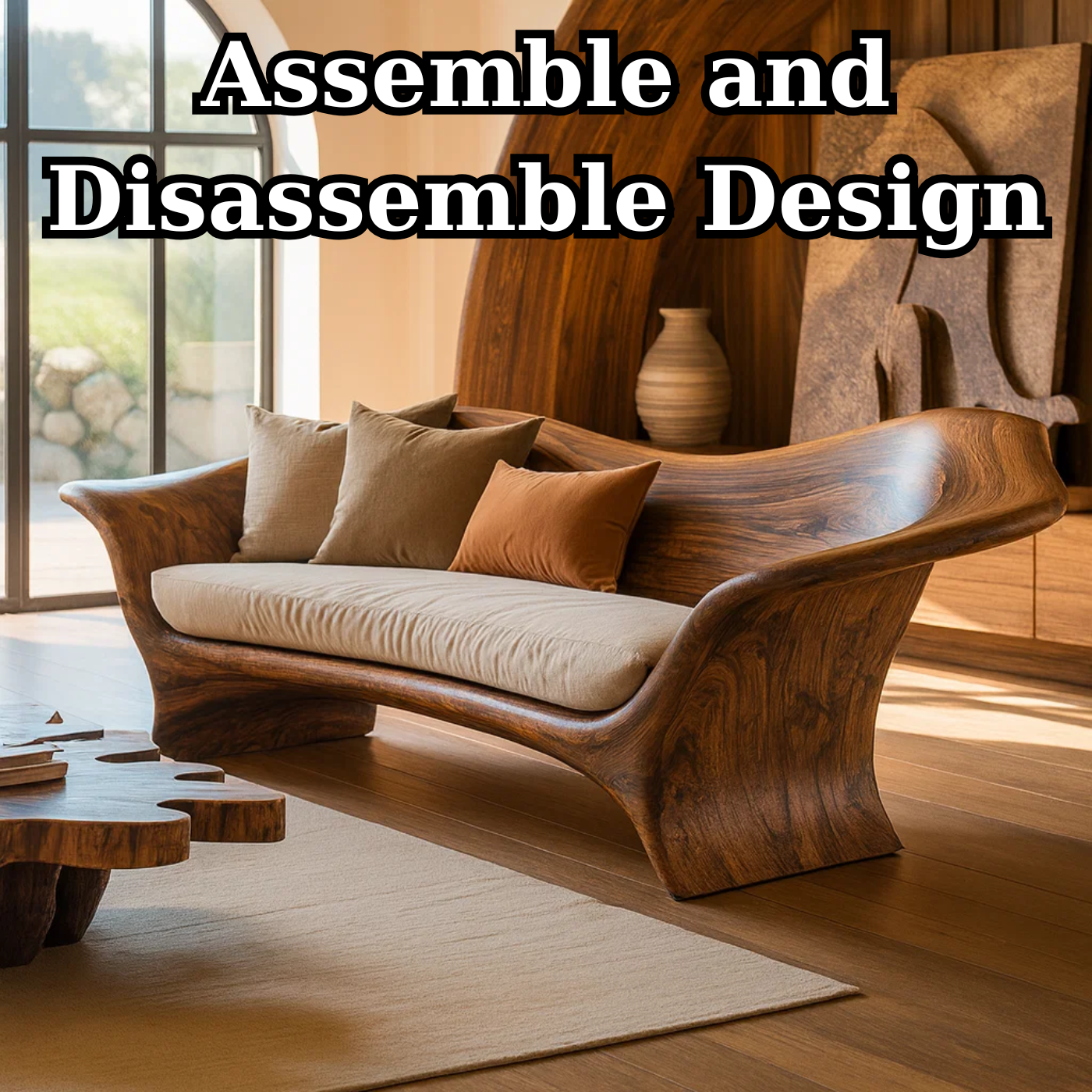 Handcrafted Solid Wood Sofa – Organic Modern Design