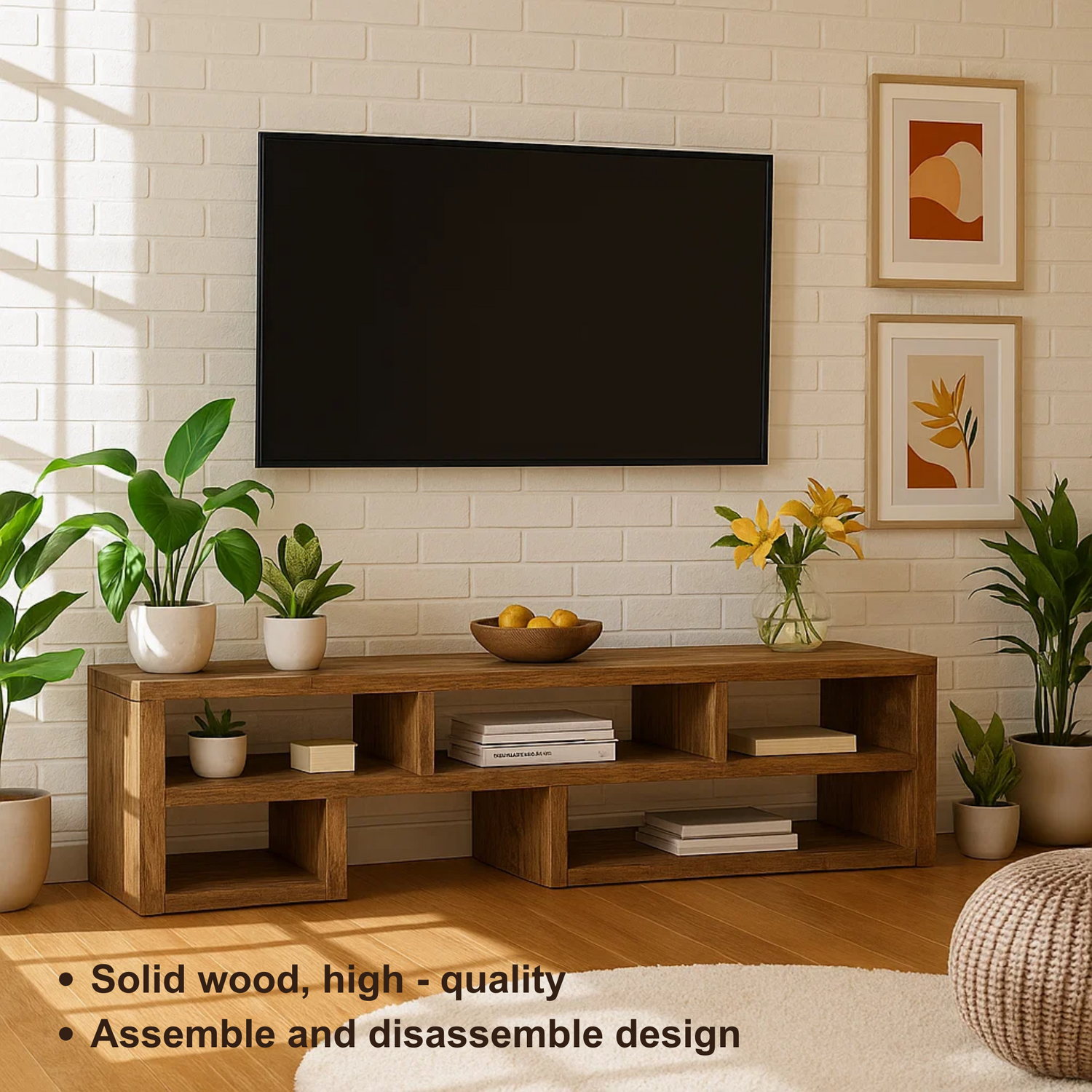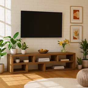 Handcrafted Solid Wood TV Stand – Minimalist Open Shelf Media Console for Modern Interiors