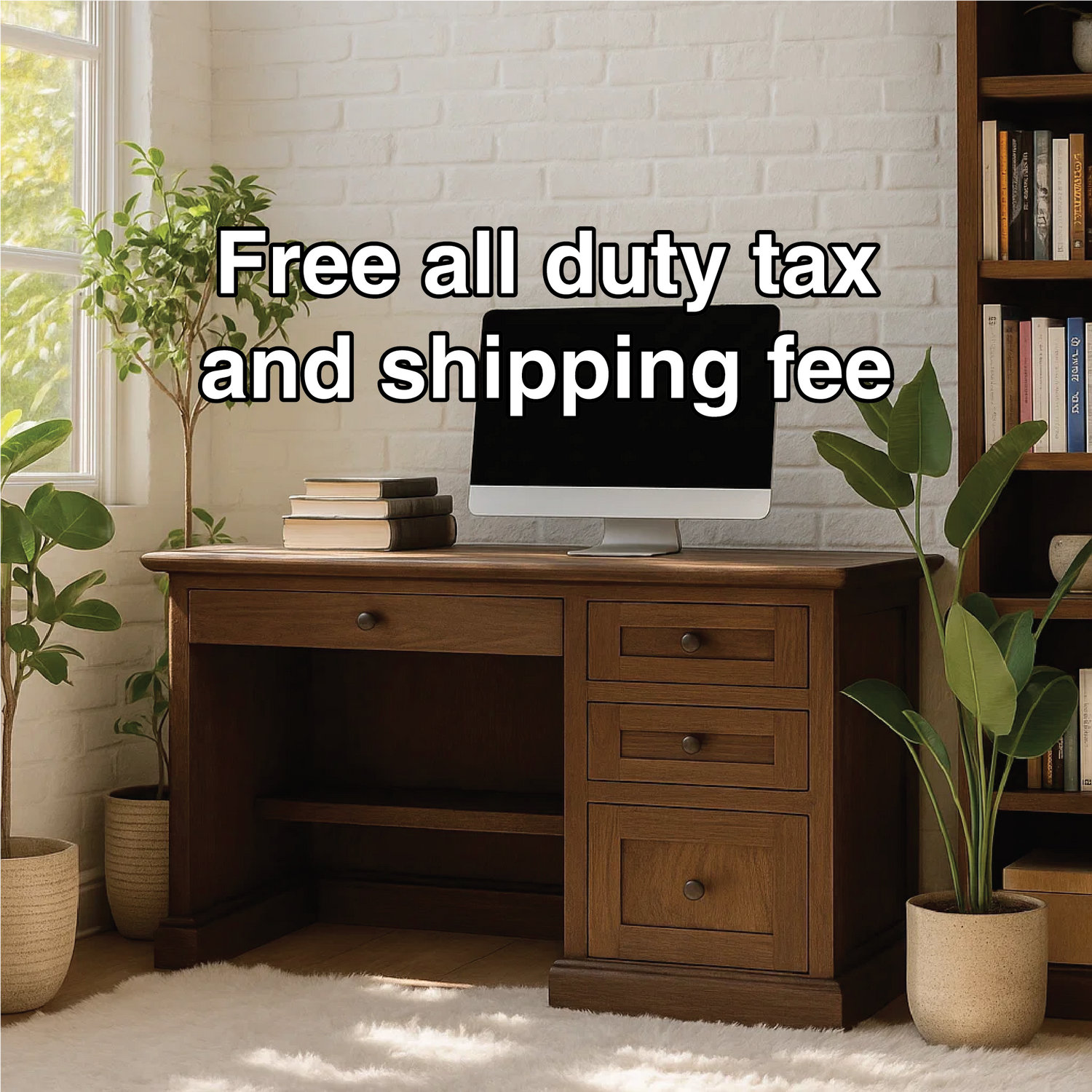 This handcrafted solid wood desk brings warmth and sophistication to your workspace. Designed in a classic walnut tone, it features smooth drawers and refined detailing for elegant storage. Perfect for home offices seeking craftsmanship, durability, and timeless appeal.