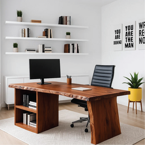 Handcrafted Solid Wood Work Desk – Live Edge Executive Office Table with Modern Minimal Design