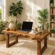 This handcrafted solid wood work desk features a stunning live-edge surface that celebrates natural beauty. Its sturdy frame and warm grain bring elegance and calm to any workspace. Perfect for creative professionals who value craftsmanship and timeless design.