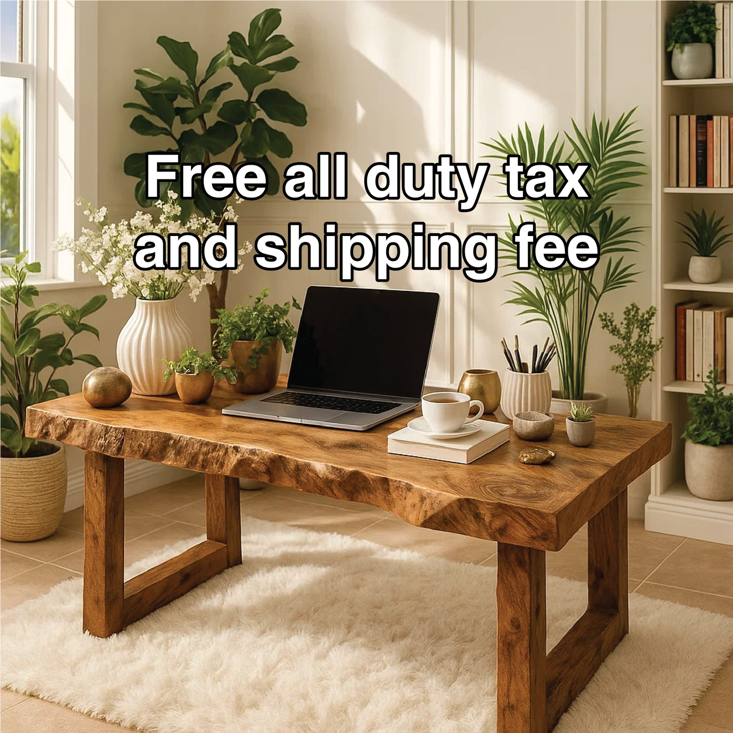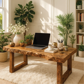 Handcrafted Solid Wood Work Desk – Natural Live Edge Office Table with Modern Minimal Design