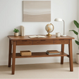 Handcrafted Solid Wood Writing Desk – Minimalist Work Table with Drawers and Open Shelf Design